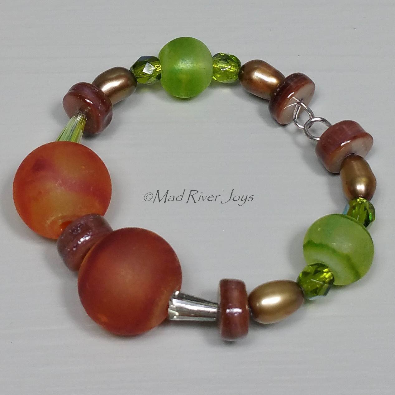 Handmade in the USA with glass beads on memory wire.