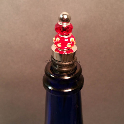 Red Floral Glass Bead Bottle Stopper with Red Glass Crystal Rondelle.