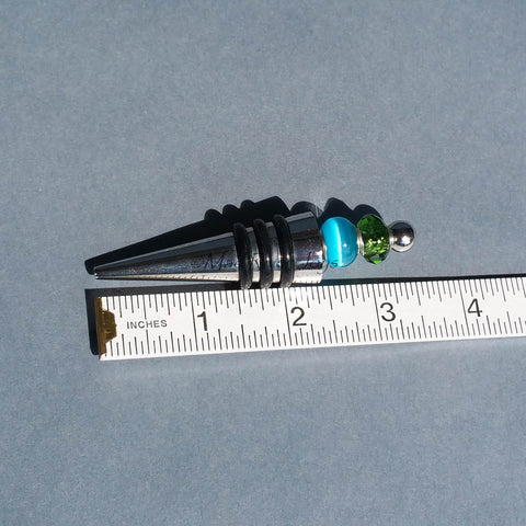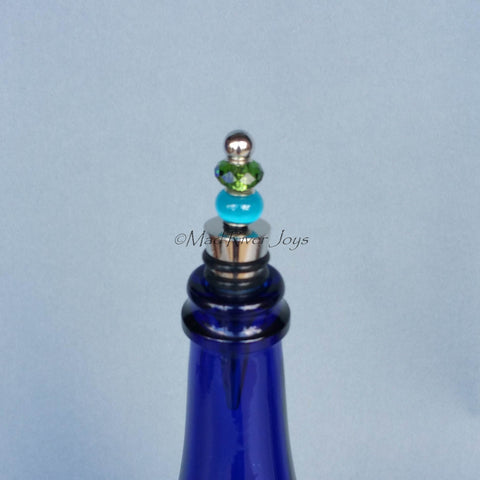 Turquoise Cat's Eye Glass Bead and Green Aurora Borealis Crystal Glass Bead Bottle Stopper.