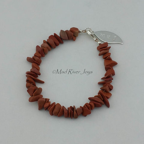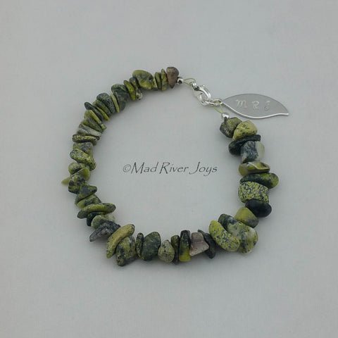 Pebbles are strung on strong flexible beading wire for a finished length of approximately 9.5".